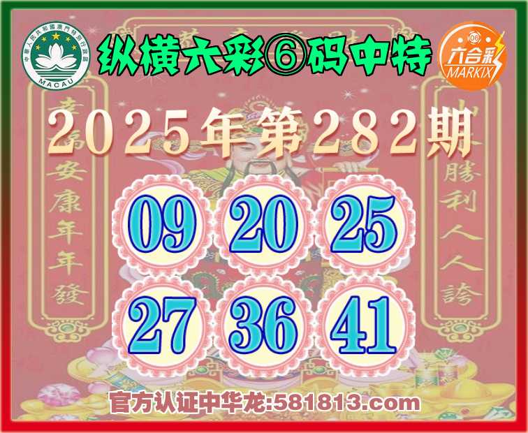 282期:《纵横六彩》 🩴⑥码中特🩴【09.20.25.27.36.41】开:41准