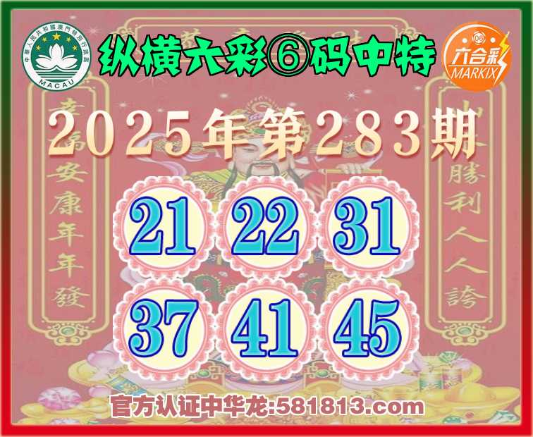 283期:《纵横六彩》 🩴⑥码中特🩴【21.22.31.37.41.45】开:45准