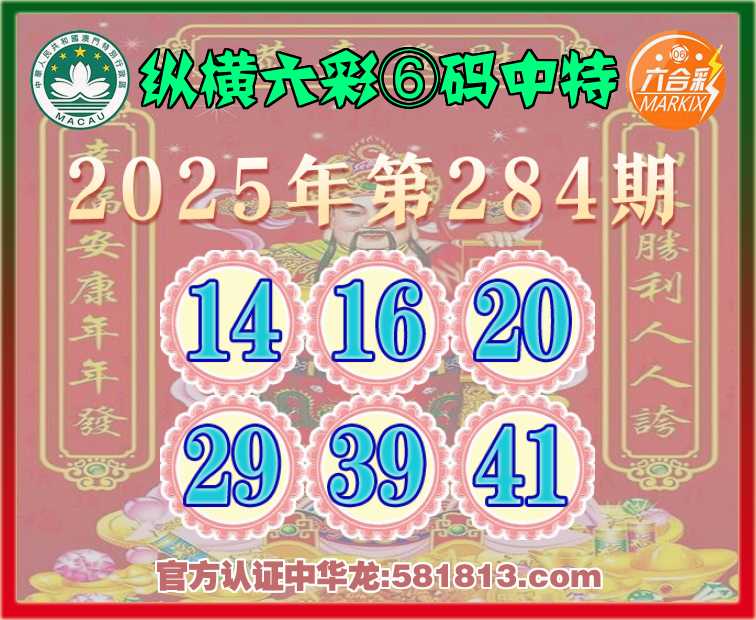 284期:《纵横六彩》 🩴⑥码中特🩴【14.16.20.29.39.41】开:41准上榜认证