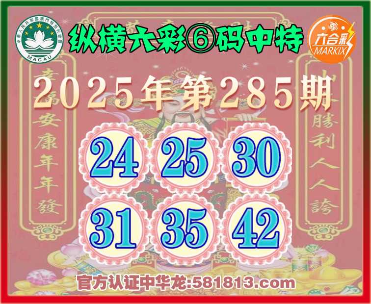 285期:《纵横六彩》 🩴⑥码中特🩴【24.25.30.31.35.42】开:24准上榜认证