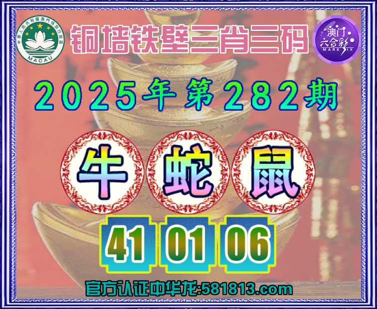 282期:《铜墙铁壁》 😳三肖三码😳【牛蛇鼠】【41.01.06】开:牛41准
