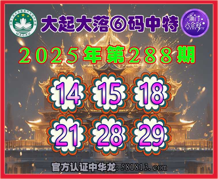 288期: ♣️《大起大落》 ♣️⑥码中特♣️【14.15.18.21.28.29】开:14准