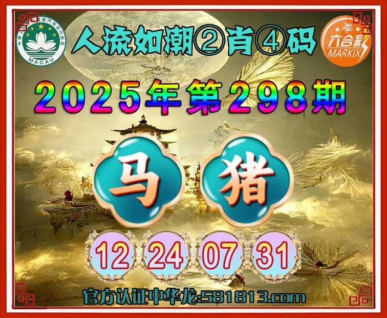 298期:《人流如潮》 ♠️②肖④码♠️【马猪】【12.24.07.31】开:00准
